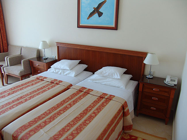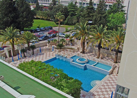 Расположен в курортном месте Бечичи. В отеле 230 однокомнатных номеров и 2 апартамента