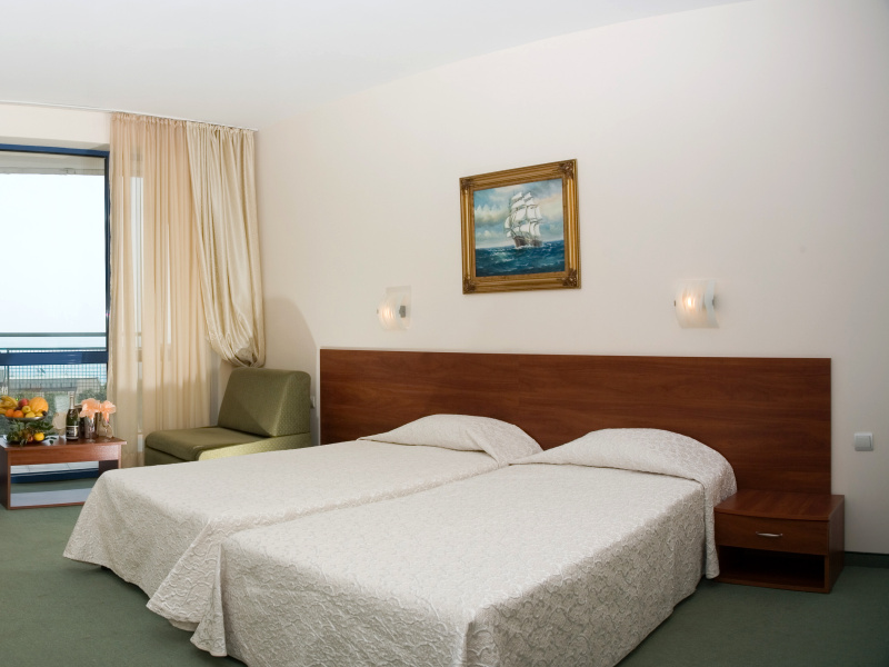 Расположен на второй линии курорта Золотые Пески. В отеле 182 стандартных двухместных номера, 6 семейных номеров и 17 Studio