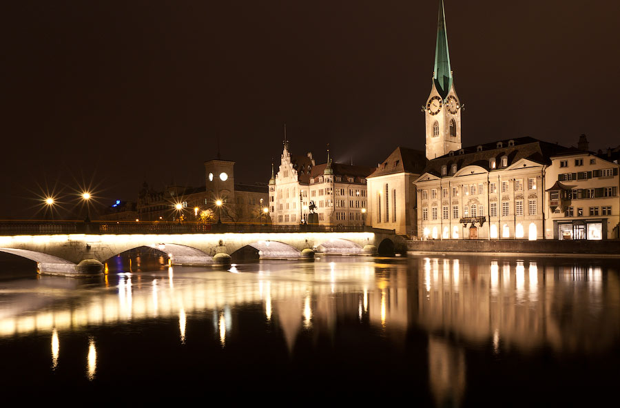 Основанный римлянами как таможенный пост Турикум у истока реки Лиммат на берегу Цюрихского озера (Zürichsee, Lac de Zurich), к VI веку он уже был крупным торговым центром области, быстро заселявшейся германским племенами. До склонов Альп отсюда всего 30 километров, причем все их можно преодолеть по водным артериям, по ним же можно свободно спуститься в Рейн, а оттуда – в Балтику, поэтому город быстро рос и богател. В 853 году здесь было основано первое аббатство (знаменитый и в наши дни Фраумюнстер), в 1218 году город получает имперскую привилегию, а уже в 1336 году мэром становится не член знатного рода, а лидер объединения местных промышленных цехов Роберт Брюн. Цюрих был и центром Реформации, и городом-республикой, отсюда же была проложена первая в стране железная дорога до Базеля. В общем, свое современное положение и влияние город целиком оправдывает длинной и богатой историей.