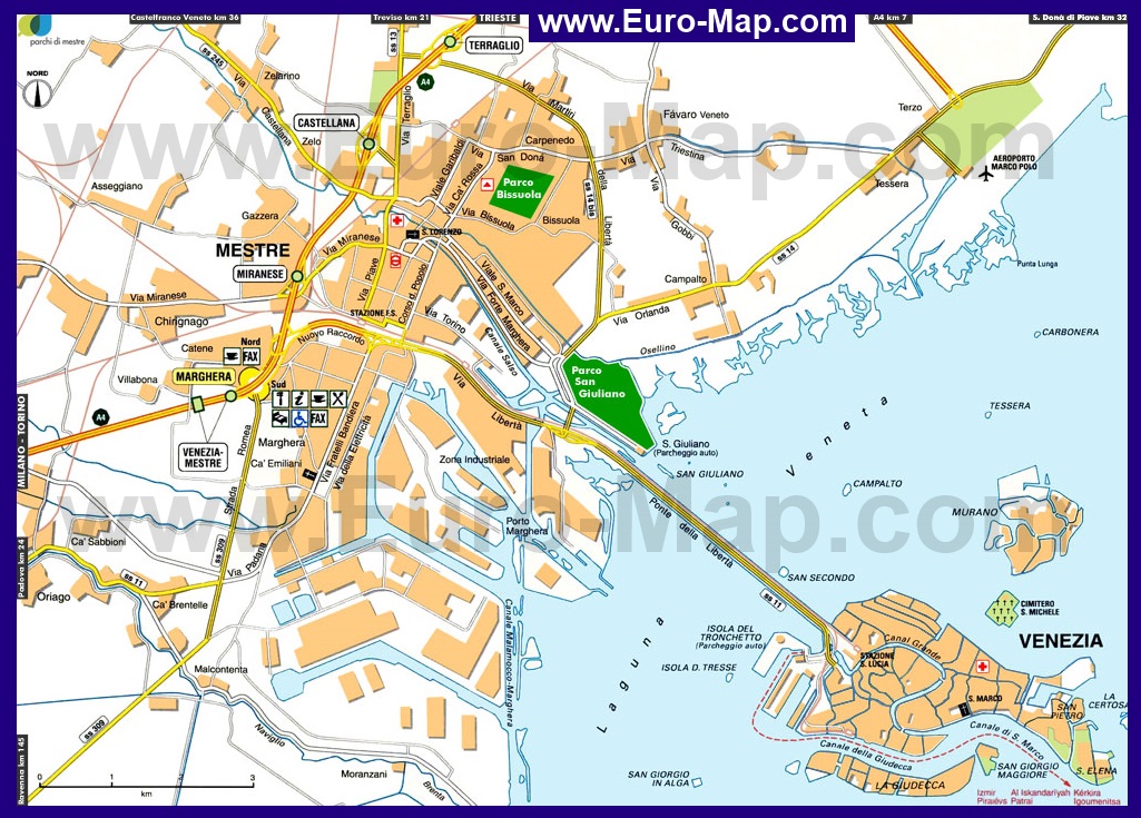 Местре (Mestre) — один из районов Венеции, считается главными «въездными воротами» в самое романтичное место на свете. Исторически именно через Местре осуществлялась связь островов Венецианской лагуны с материковой частью Венето. Очаровательный городок на севере Италии. Совсем рядом с Местре находится Венеция, город соединяет с ней большой железнодорожный мост, который называется Мост Свободы. Центр города закрыт ля транспортного движения, поэтому прогуливаться по нему пешком можно без всяких препятствий. Сегодня Местре выполняет перевалочную функцию практически всех без исключения туристов, следующих в Венецию. Ведь именно здесь находятся адекватные по цене отели, где можно остановиться на ночь, чтобы на следующее утро продолжить осматривать каналы и закоулочки Сан-Марко. И здесь же можно припарковать машину за вменяемые деньги, чтобы потом на 15 минут и пару евро добраться до центра Венеции, и наслаждаться свежим морским бризом, не испорченным даже миниатюрной тарахтелкой «Веспа». Недалеко от центра вы можете найти множество уютных кафе, многие из которых размещаются на открытых террасах. На каждом шагу вам будут встречаться кондитерские магазины и блочные, которые просто манят дивными ароматами. Что касается достопримечательностей, то и ими этот уютный городок не обделен