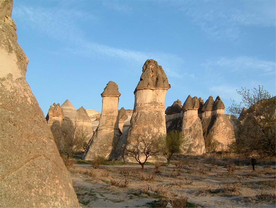 Миллионы лет назад в результате сильного извержения вулканов Эрджияс и Хасандаг Анатолийское плато было покрыто обильным слоем туфа. В результате выветривания и эрозии мягкая вулканическая порода со временем превратилась в так называемые «дымовые трубы фей», по форме напоминающими пирамиды и конусы, разного цвета — от розового до зеленого и желтого. Склоны гор, подступающих к городским окраинам, испещрены десятками зияющих провалов — полуразрушенными жилищами невшехирцев прошлого. Это один из немногих городов Каппадокии, где люди, как и пятьсот лет назад, обитают в туфовых пещерах, переоборудовав их в современные жилища. Жить так не вполне безопасно — случаются обвалы. После одного из них, унесшего несколько жизней, правительство Турции всерьез озаботилось переселением людей в обычные дома, которые, однако, и сейчас здесь теснятся вперемешку со старыми жилищами.