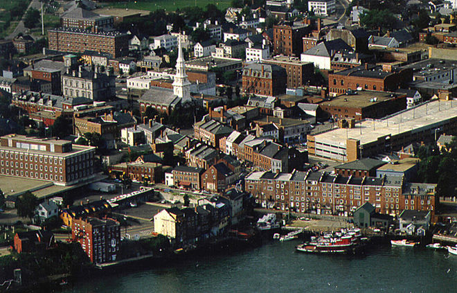 Климат здесь умеренный морской, с теплыми зимами и прохладными летними месяцами. Определяющую роль в его формировании играют теплые воздушные массы, образующиеся над Гольфстримом. При этом в сравнении с другими регионами погода здесь суше и теплее. Снегопады и морозы случаются довольно редко — в зимние месяцы Портсдаун-Хилл защищает город от холодных северных ветров. Кроме того, благодаря явлению, называемому "городской остров тепла", температура в Портсмуте немного превышает температуру в соседних районах. Средняя температура января: +7°С; средняя июльская температура: +25°С (согласно другим источникам, +22°С). Годовое количество осадков: 508 мм. Годовая продолжительность солнечного сияния: 1 541 часов.