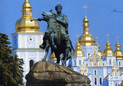 Самым знаменитым памятником Киева, по которому люди узнают город, и который печатают на всех открытках, является памятник Богдану Хмельницкому. Огромная статуя известного гетмана, восседающего на своем коне, гордо красуется посреди Софиевской площади.