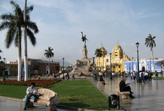 Трухильо является центром департамента Либертад, находящегося на севере страны. Город расположен в устье реки Моче на побережье Тихого океана примерно в 56 км от столицы Лимы. Будучи третьим по значимости и по величине городом государства, он является также центром северной части Перу. Значительное развитие здесь получила промышленность, представленная предприятиями химической, пищевкусовой, кожевенной, текстильной и целлюлозно-бумажной отраслей. В Трухильо построены заводы, занимающиеся сборкой тракторов и автомобилей, к западу от города расположены активно разрабатываемые залежи меди. Не менее развито здесь и сельское хозяйство. Поля кукурузы и пшеницы, окружающие город, обеспечивают зерновыми несколько близлежащих провинций. Трухильо известен своими конезаводами, на которых разводят перуанских скакунов. Каждый год в сентябре здесь проводятся соревнования по езде на этих лошадях, которые организовываются собственниками конезаводов и обычно приурочены к местному фестивалю весны. Местность, на которой расположен Трухильо, имеет очень древнюю историю. Поселения индейцев появились на этом месте во II веке до н.э. Первоначально здесь активно развивалась культура мочика, получившая своё название в честь местной реки Моче. К этому периоду относятся сохранившиеся до нашего времени пирамиды Луны и Солнца. Основными видами деятельности у индейцев мочика были сельское хозяйство и обработка металлов, преимущественно золота и серебра. На смену этой цивилизации в XIII столетии пришло государство Чимор. Свидетельство его существования также сохранилось до нашего времени в виде развалин древнего города Чан-Чан. В период своего расцвета его территория достигала Лимы на юге и границ Эквадора на севере. В развитии ремёсел индейцы культуры чиму достигли значительных высот. Они массово производили изделия из золота и различных сплавов, керамику и ткани, из которых шилась одежда, изготавливались шатры и ковры. В XV веке Чимор, как и прочие государства Южной Америки, не избежал экспансии инков. Основание города Трухильо произошло в 1535 году по указу Франциско Писарро, основавшего также и Лиму. Город получил название в честь родины Писарро – небольшого городка в испанской провинции Эстремадура. Достаточно быстро город заселили испанские идальго, которые построили здесь свои особняки и усадьбы, многие из которых до сих пор являются архитектурным украшением Трухильо. Благодаря этим красивейшим постройкам, а также многочисленным церквям и храмам город получил звание красивейшего и богатейшего в Перу того времени. Здесь любили отдыхать представители знати во время их путешествия из Лимы в Кито. Во времена борьбы за освобождение от гнёта Испании Трухильо прославился прежде всего тем, что именно он первым объявил свою независимость. Возможно, поэтому центральная площадь города получила название площадь Оружия. В её центре в 1820 году была выстроена статуя свободы в память о том, что этот город стал оплотом независимости, и здесь располагалась штаб-квартира одного из лидеров борьбы Симона Боливара. Серьёзная трагедия постигла город в 1970 году, когда сильнейшее землетрясение нанесло значительный урон многим строениям, в том числе и историческим памятникам архитектуры. Стараниями местным властей все они были отстроены, поэтому Трухил